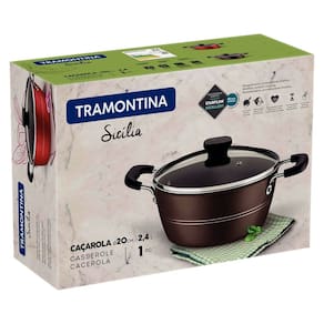 Para preparar deliciosos legumes refogados ou um risoto cremoso e saboroso, a caçarola Tramontina Sicília em alumínio com revestimento interno e externo em antiaderente Starflon Excellent avelã 20 centímetros de diâmetro 2,4 litros é indispensável. Produzida em alumínio com revestimento antiaderente Starflon Excellent, ela vai lhe garantir o melhor para a hora de preparar suas refeições: cozimento rápido e sem grudar na superfície. Suas alças são em baquelite antitérmico, não aquecem e proporcionam um manuseio muito mais confortável e seguro. Ela ainda é fácil de limpar, mais durável, não prejudicial a saúde e pode ser levada à máquina de lavar louças, o que a torna a escolha ideal para completar sua cozinha!