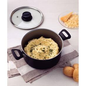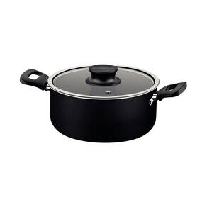 Caçarola Tramontina Formia em Alumínio com Revestimento Interno e Externo Antiaderente Starflon Max Preto com Tampa de Vidro 22 cm 3,7 L A Caçarola Tramontina Formia em Alumínio com Revestimento Interno e Externo Antiaderente Starflon Max Preto com Tampa de Vidro 22 cm de diâmetro 3,7 L é perfeita para preparar os mais variados tipos de receitas e com muito mais praticidade! Com corpo produzido em alumínio, ela proporciona um cozimento rápido e uniforme dos alimentos, devido a espessura de 1,6 milímetros. Seu revestimento é em antiaderente Starflon Max, característica que evita que os alimentos grudem em sua superfície e a torna fácil de limpar. Suas alças são em baquelite antitérmico e garantem segurança e conforto durante o manuseio. Ela acompanha tampa de vidro temperado com borda em aço inox, que lhe concede um toque especial e auxilia na visualização durante o preparo dos alimentos. Com a Tramontina, você tem só o melhor e garante as melhores refeições para você e sua família! Corpo de alumínio com espessura de 1,6 mm que proporciona cozimento rápido e uniforme. Revestimento interno e externo de antiaderente Starflon Max que não gruda, é fácil de limpar, mais durável e não é prejudicial a saúde.Tampa de vidro temperado, com saída de vapor e borda de aço inox. Alças de baquelite antitérmico e pegador de nylon que oferecem segurança durante o manuseio. Pode ir à máquina de lavar louças facilitando seu dia a dia. Cuidados com o produto A capacidade volumétrica máxima para cozimento é de 3/4 da capacidade total da peça. Posicione os cabos dos utensílios voltados ao centro do fogão.Em fogões com grade, centralize a peça e alinhe o cabo com a grade. Utensílios quentes devem estar fora do alcance das crianças. Este produto não pode sofrer modificações. Antes do primeiro uso, lave com esponja macia, sabão neutro ou detergente líquido. Depois de secar, unte a área interna com óleo ou gordura e leve ao fogo por um ou dois minutos. Deixe esfriar e lave novamente.Seu utensílio Starflon está pronto para uso com ou sem gordura, sempre em fogo baixo ou médio (nunca superior a 350ºC). Para mexer os alimentos use somente utensílios de silicone, nylon ou madeira. Com o uso, o pegador pode afrouxar devido à dilatação normal dos materiais. Reaperte apenas o suficiente, sem forçar. Limpeza: Evite a imersão do utensílio quente em água fria.Nunca utilize produtos abrasivos na lavagem. Se deixar queimar alimentos, umedeça a área e reserve até que possa remover os resíduos grudados com esponja e sabão. Para descarte dos produtos e embalagens siga as orientações de reciclagem vigentes. Garantia 90 dias para vícios ou defeitos de fabricação.
