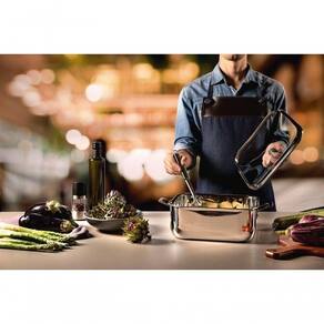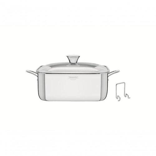 Prepare deliciosas receitas com a Caçarola Tramontina Quadrada em Aço Inox Corpo triplo com Tampa da linha Grano 7,3 litros ;e leve à mesa toda beleza que uma panela de inox oferece, com design super moderno e cheio de estilo. Com ela você alia praticidade, estilo, bom gosto e beleza na hora de preparar os alimentos para você e sua família. Seu corpo triplo (aço inox + alumínio + aço inox), possui tecnologia que proporciona cozimento mais rápido e uniforme dos alimentos e contribui para que permaneçam quentinhos por muito mais tempo. Com seu design diferenciado totalmente em aço inox não solta resíduos nos alimentos. Possui tampa com encaixe perfeito e pode ser utilizado em fogões a gás, elétrico, vitrocerâmico e indução, bem como ser levado à máquina de lavar diariamente sem comprometer sua eficiência e qualidade. É muito mais economia, saúde, tecnologia e lindos momentos para você e sua família. Acompanha suporte para tampa.