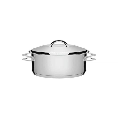 Economiza tempo e energia: o segredo está no fundo triplo (aço inox + alumínio + aço inox), que distribui o calor uniformemente, proporcionando um cozimento mais rápido. Por isso, você pode manter o fogo baixo durante todo o preparo e, assim, poupar energia. Além disso, a caçarola toda em aço inox pode ir ao forno para gratinar ou finalizar pratos, na temperatura máxima de 260C.
