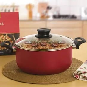 A Caçarola Vermelha Tramontina Turim é uma peça essencial para qualquer cozinha que busca eficiência e estilo. Com 20 cm de diâmetro e capacidade de 2,8 litros, ela é ideal para preparar uma variedade de pratos, desde receitas do dia a dia até pratos mais elaborados. Fabricada em alumínio de alta qualidade, a caçarola garante uma excelente distribuição de calor, permitindo um cozimento uniforme e eficiente dos alimentos. O revestimento antiaderente Starflon Max proporciona uma superfície de cozimento que evita que os alimentos grudem, facilitando a limpeza e promovendo uma cozinha mais prática e saudável. O design elegante na cor vermelha adiciona um toque de modernidade à sua cozinha, enquanto o revestimento resistente ao desgaste assegura durabilidade e performance a longo prazo. A caçarola é compatível com diversas fontes de calor e possui uma estrutura robusta, tornando-a uma escolha confiável para suas preparações culinárias.