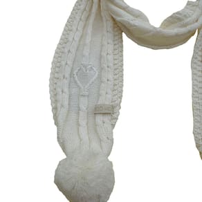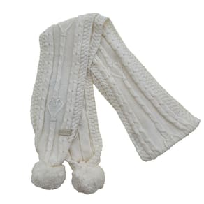 Cachecol de Tricô Para Meninas Com Pompom Pérola - M - Branco