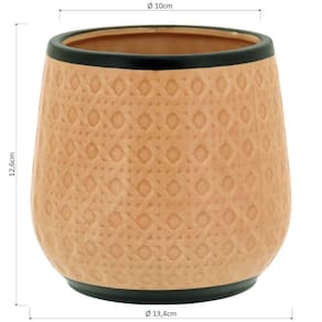 Cachepô 13x13x13cm Cerâmica Bege Esse cachepô é produzido com cerâmica de qualidade e possui um leve relevo caracterizando uma tela entrelaçada que dá ainda mais charme para ele. Ele é lindo e charmoso, ideal para decorar diversos ambientes internos e externos. É ideal para cultivar uma planta pequena.