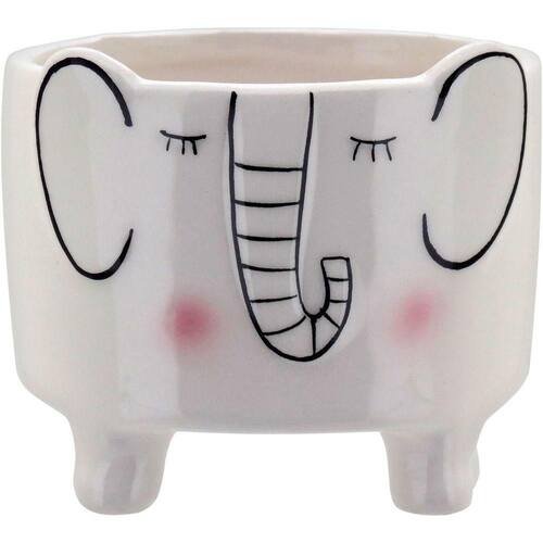 Cachepô 8x9x9cm Cerâmica Branco Elefante