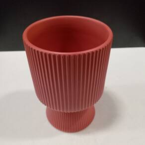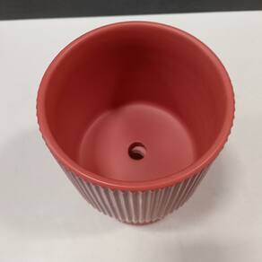 CACHEPÔ Altura: 16 cm Largura: 11,7 cm Profundidade: 11,7 cm Espessura: ,5 cm Peso: 0,69 Kg Diâmetro da Base: 9,4 cm Diâmetro do Topo: 10,6 cm Material: Cerâmica Cor: Vermelho