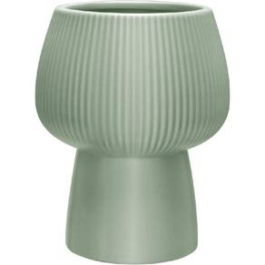 Altura: 16,6 cm Largura: 12,5 cm Profundidade: 12,5 cm Peso: 0,52 Kg Diâmetro da Base: 9 cm Diâmetro do Topo: 15 cm Material: Ceramica Cor: Verde