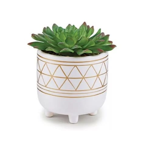 Cachepot Com Pés Cerâmica Com Suculenta Permanete