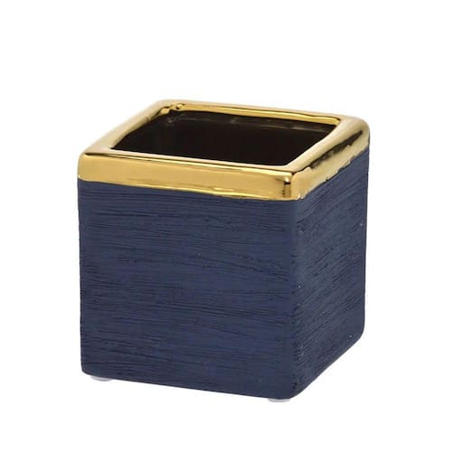 Vaso Decorativo Cachepot Ceramica Azul borda Dourada