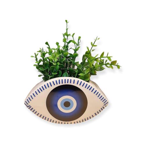 Cachepot de porcelana - Olho Grego O Vaso Decorativo veio para trazer uma decoração com estilo e criatividade para você, produto de ótima qualidade e durabilidade para dar aquele toque no seu ambiente. O Cachepot Decorativo pode ser em decorações internas e externas,com suculentas, orquideas ou cactos seria uma ótima opção,sendo um excelente presente, trazendo elegância para o ambiente. Nosso Vaso de Porcelana ajuda na decoração com um design moderno e criativo. Medida: 9x15x7cmcm Quantidade: 1 peça Cor: Branca/Azul Composição: Cerâmica Categoria: Decoração Origem: Acompanha 2 ramos de plantas Marca: Não Informado