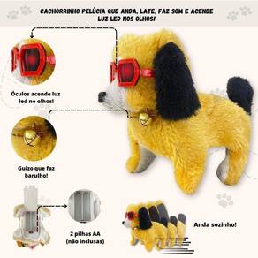 Loja oficial da europio '' '' Somos uma das lojas com mais variedades de brinquedos no país Aqui em nossa loja você encontra diversos brinquedos diferentes, de alta qualidade, trazendo segurança e qualidade em todos os nossos produtos Prezamos pela qualidade de nossos produtos, por isso todos os produtos são testados e conferidos antes do envio Todas nossas fotos e vídeos são reais, tiradas por nossa equipe buscando passar maior transparência para nossos clientes. = = = = = = = = = = = = = = = = = = = = = = = descrição = = = = = = = = = = = = = = = = = = = = = = = = = = = = Funções: O que você vai receber em sua casa conteúdo da embalagem cachorrinho que anda, late e acende luz nos óculos Medidas aproximadas: Altura: 13 cm Largura: 10 cm Comprimento: 8 Material: pelúcia e eletrônico