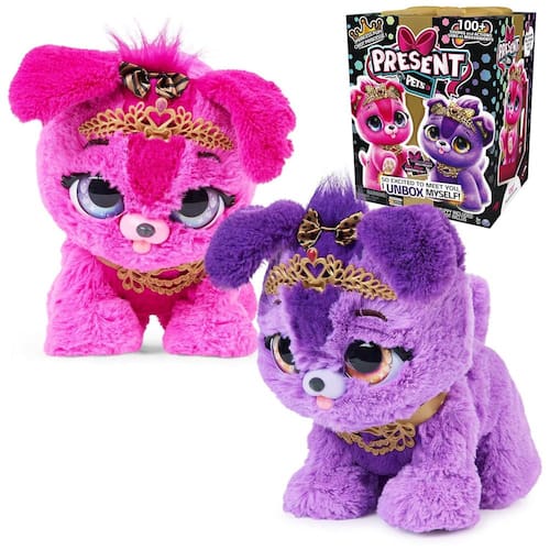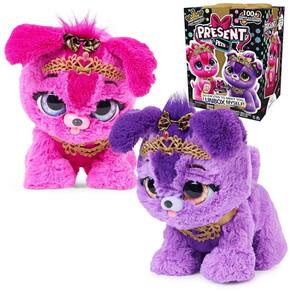 Para mais diversão, cada Princess Pup tem dois jogos temáticos de latidos que vocês podem jogar juntos. Em Royal Repeat, fale com seu filhote e ele imitará seus latidos Para jogar Princess Promises, seu filhote latirá várias vezes e latirá de volta o mesmo número de vezes e vencerá Apresentando mais de 100 sons e ações, Present Pets dá vida à verdadeira felicidade de ser surpreendido com seu próprio cachorrinho.