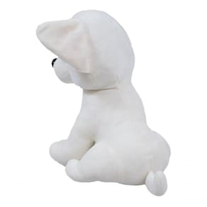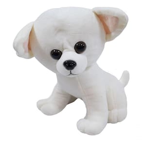 Cachorro de pelúcia da raça Chihuahua na cor branca sentado. Material: poliéster; Enchimento: fibra de poliéster; Produto certificado por Órgão acreditado pela CGCRE do INMETRO