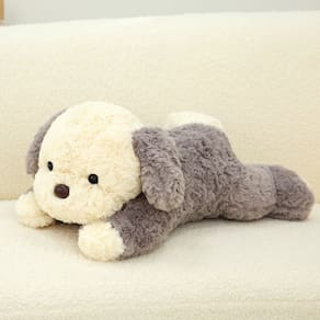 Material: pelúcia Tamanho: 35 cm. Design de cachorrinho sorridente — apresenta um cachorro de pelúcia em estilo de desenho animado em uma pose deitada com uma pelagem macia bege e marrom e uma expressão adorável. Perfeito para abraçar — mede 35 cm de comprimento, ideal para abraçar, dormir ou usar como uma almofada aconchegante na cama ou no sofá. Material macio e seguro — Feito de tecido de pelúcia premium e cheio de recheio macio, suave para a pele das crianças e perfeito para brincadeiras diárias. Brinquedo unissex para todas as idades — Projetado para meninos e meninas, as cores neutras e o rosto amigável o tornam universalmente atraente. Ótimo para casa ou viagem — Compacto o suficiente para viagens e cochilos em qualquer lugar, além de servir como uma peça de decoração encantadora para quartos infantis.