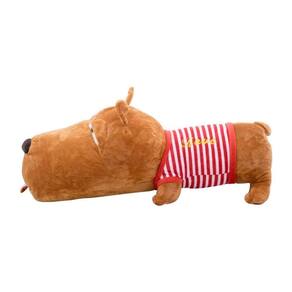 Sabe aquele cachorrinho super fofo que você pode abraçar o tempo todo que não faz bagunça não morde e nem faz caquinha? Claro que não é um cachorrinho de verdade mas é uma fofura em forma de pelúcia. Ele vem com uma roupinha vermelha listrada e com um bordado escrito love em amarelo. Com carinha de sono e a linguinha pra fora ele já vem deitadinho. Nem reparou no tamanho do focinho do bicho né? Sem dúvida é um presente super fofo que todo mundo irá amar. Material: poliéster; Enchimento: fibra de poliéster; Produto certificado por Órgão acreditado pela CGCRE do INMETRO