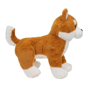 Bichinho de pelúcia no formato do cachorro japonês da raça Shiba com 43 cm de comprimento levantado. Olhos e nariz de plástico. Material: poliéster; Enchimento: fibra de poliéster; Produto certificado por Órgão acreditado pela CGCRE do INMETRO