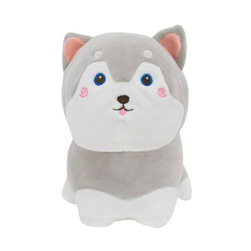Cachorro de pelúcia da raça Husky sentado com 26 cm de altura.