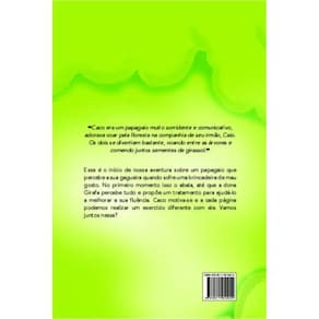 Caco era um papagaio muito sorridente e comunicativo, adorava voar pela floresta na companhia de seu irmão, Caio. Os dois se divertiam bastante, voando entre as árvores e comendo juntos sementes de girassol. Esse é o início de nossa aventura sobre um papagaio que percebe a sua gagueira quando sofre uma brincadeira de mau gosto. No primeiro momento isso o abala, até que a dona Girafa percebe tudo e propõe um tratamento para ajudá-lo a melhorar a sua fluência. Caco motiva-se e a cada página podemos realizar um exercício diferente com ele. Vamos juntos nessa? Marca: ALBATROZINHO EDITORA