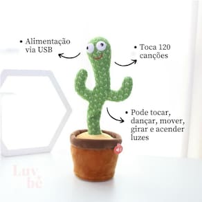 Cacto dançante falante com 120 músicas brinquedo infantil roupa irá . Novo brinquedo da criançada, o cacto dança e fala vem com uma função de gravação para repetir qualquer linguagem que você fala, de uma maneira engraçada, ele é ótimo para educação dos filhos e diversão da família, é um grande presente para esse dia das crianças. O brinquedo pode cantar e danças 120 canções felizes e danças animadas. Ele é interativo e perfeito para todas as idades, auxiliando nas primeiras palavras do bebe, diverte as crianças e adultos. Especificações: