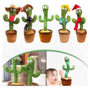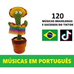 Cactos de pelúcia, ele dança, toca música, acende luzes e repete sua fala.