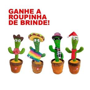 Novo brinquedo da criançada, o cacto dança e fala vem com uma função de gravação para repetir qualquer linguagem que você fala, de uma maneira engraçada, ele é ótimo para educação dos filhos e diversão da família, é um grande presente para esse dia das crianças.O brinquedo pode cantar e danças 120 canções felizes e danças animadas. Ele é interativo e perfeito para todas as idades, auxiliando nas primeiras palavras do bebe, diverte as crianças e adultos.Especificações:Alimentação: via USBToca 120 cançõesPode tocar, dançar, mover, girar e acender luzesMaterial: Plush Macio, confortável, e não toxico Itens Inclusos:1x Cacto dançanteDúvidas Frequentes:Fala somente em portuguêsEle repete o que a pessoa fala, independente do idioma.Ele é voltagem 110 Caso seja utilizado para carga o adaptador de tomada de celular, pode ser carregado em 110v ou 220v.Ele toca música Esse modelo de cacto vai com até 120 músicas.Homologação Inmetro: IP-BRI-0743/2021-10