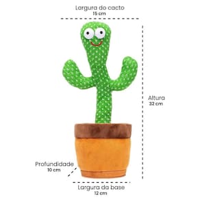Cacto dançante toca música, repete sua fala e dança com luzes O cacto dançante é um brinquedo infantil super interativo quem vem conquistando as crianças ao redor do mundo.