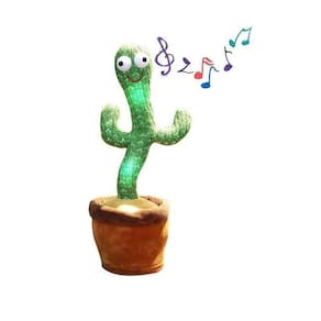 Cacto de pelúcia com seu olhar muito engraçado ele dança, gira, mexe os braços, toca música, acende luzes e repete sua fala. Tecido de malha com efeito tridimensional, macio, confortável, seguro e funcional Ele imita qualquer palavra que disser perto dele, possui luzes coloridas que chamam toda a atenção das crianças. Toca várias canções diferentes em inglês. Feito de material seguro, macio, confortável, e não tóxico.