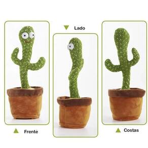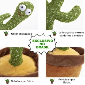 Cacto de pelúcia com seu olhar muito engraçado ele dança, gira, mexe os braços, toca música e repete sua fala.