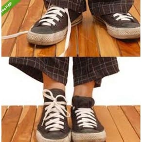 O mágico exibe seu cadarço desamarrado e dando apenas uma chacoalhada no tênis ele se amarra sozinho! Número muito intrigante apresentado por vários mágicos nacionais e internacionais na TV!