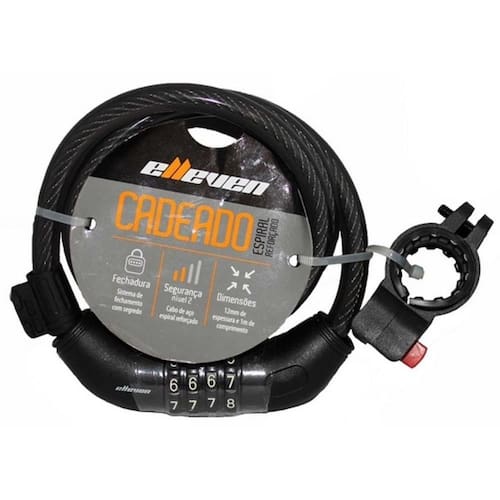 Cabo de aço revestido Segredo de 4 dígitos alterável Tamanho 1m x 12mm de espessura Acompanha suporte para transporte na bicicleta Peso Aprox.: 400g Marca: Elleven