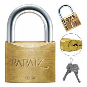 DESCRIÇÃO O Cadeado Standard Papaiz, é muito utilizado para trancar ou travar portões, janelas, acesso ao registro de luz, caixa de correios, armários, residências, motos, estacionamentos, entre outros. De uso domestico ou comercial. BENEFÍCIOS O Cadeado Standard Papaiz, faz toda diferença na hora de travar o seu portão fazendo com que todo mundo se sinta mais seguro, além disso, possui um padrão exportação que proporciona muita qualidade para as mais diversas aplicações. Por ser confeccionado em aço maciço possui maior resistência ao corte e à corrosão, além de garantir maior resistência contra rupturas ou corte fazendo com que a sua durabilidade e eficiência seja maior. CARACTERÍSTICAS O Cadeado Standard Papaiz, é produzido em latão maciço , haste de aço cementada e cromada, possui 2 chaves em latão niqueladas. Para conservação melhor de o produto lubrificar com óleo mineral quando necessário. Ean: 7891194000388