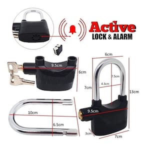 Cadeado kinbar alarm lock utilizado em motos bikes portão, como forma de proteção contra roubos ou furto, muito resistente, composição de aço. Melhor segurança pessoal , ao tentar abrir ele emite sons bem alto inibindo qualquer ação de roubo. . Alarme antifurto sonoro 110dba prata/cromado ou preto Especificações: - sirene de 110db - alarme na parte interior do corpo - alarme sob a água, impermeável - pode ser com alarme ou sem alarme - alarme de três tons Corpo do cadeado: - corpo endurecido da liga de zinco - resistente à corrosão - resistente ao tempo - anti broca - módulo de alarme removível - haste do cadeado: Aço inoxidável endurecido Bateria: 12hs de disparo Itens inclusos 1 cadeado 3 chaves 1 kit de bateria reserva Medidas do cadeado. Largura 6,5 cm Comprimento 12 cm Espessura 10 mm Diâmetro da haste 9 mm Obs: escolher a cor antes de efetuar a compra. Especificações técnicas: :: prazo de envio Após a confirmação do pagamento em :: atendimento Caso tenha dúvidas, utilize os canais de atendimento. Possuímos uma equipe altamente qualificada para respondê-los a rapidamente. :: pós-venda Não tenha dúvidas nós vendemos bem para vendermos sempre conte com nosso Atendimento em horário comercial sempre que precisar. :: dicas de compra 1. Leia todo o anúncio antes de comprar. 2. Verifique se seus dados de contato estão atualizados no momento da compra. 3. Confira o seu endereço de recebimento, pois não temos como alterá-lo. :: Este produto possui de 3 meses contra defeitos de fabricação á partir do Recebimento. Para acionar a será necessário enviar o produto de volta junto com Suas embalagens recebidas, por isso é de suma importância guardar e conservar as embalagens Marca: Não Informado Ean: 7908366014880