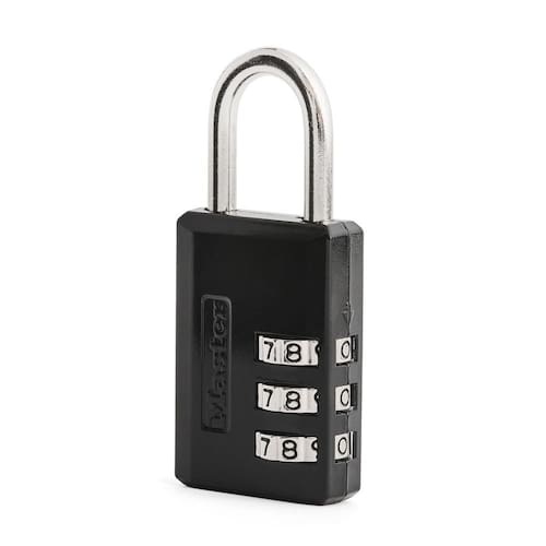 Master Lock Cadeado preto combinado, cadeado interno para academia com código personalizável de 3 dígitos para bagagem, mochilas, armários, 647D