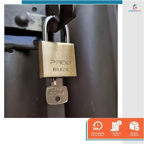 Ref.3025012 Marca: PADO Cor: Dourado Material: Corpo em latão maciço com haste em aço Quantidade de chaves: Acompanha 2 chaves prateada