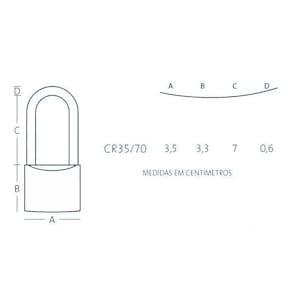 Acompanha: 01 Cadeado haste longa 35x70mm com 2 chaves Land. Marca: LAND
