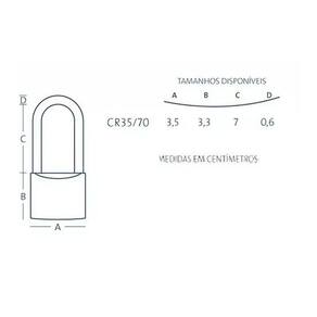 Especificações: Largura Do Corpo Do Cadeado: 35 mm Material Do Corpo Do Cadeado: Latão Altura Útil Do Cadeado: 70 mm Material da Haste do Cadeado: Aço Temperado