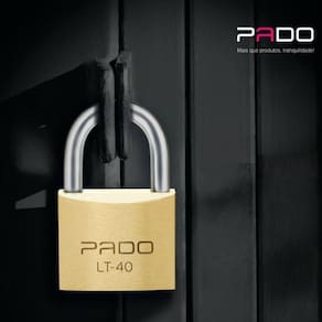 Características do cadeado latão com 2 chaves pado: Material: latão, aço inox e aço carbono. Utilizar apenas óleo mineral. Tamanhos: 20mm, 25mm, 30mm, 35mm e 40mm.