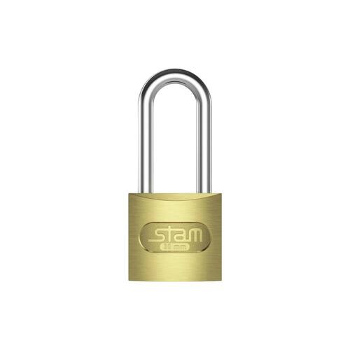 Cadeado Latonado Haste Média 30mm - Stam - O cadeado mais vendido do Brasil com melhor custo-benefício do mercado. REVESTIMENTO E-COAT Ecologicamente correto, confere mais resistência à corrosão com superfície mais protegida e cor mais bonita. Corpo: Zamac Gancho: Aço ABNT 1010/1020 Chave: Aço ABNT 1010/1020 Mola: Aço Inoxidável Pino e Contra Pino: Latão Embalagem: Blister, Caixa Segredos: Aleatórios e iguais Nível de Segurança: 2 Características Gerais do Produto: Peso Gr : 400g Dimensões: 10X10X10cm : 12 meses Marca: Não Informado Ean: 7893858010054