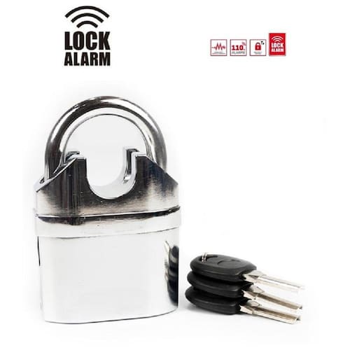 Sistema de alarme automático e sistema de bloqueio Módulo de alarme removível e/ou pode ser utilizado com alarme ou sem alarme Aço inoxidável endurecido processado a quente e manilha anti-torção À prova de spray de gelo, resistente a corrosão, resistente ao sal e às intempéries Anti Drill O pára-choque anti-choque evita arranhões Sensor duplo de choque e movimento Ativação com chave Baterias à prova de balas Pilhas de 12 botões (estilo relógio digital), duração da bateria: 6 meses Marca: Lock Alarm