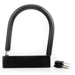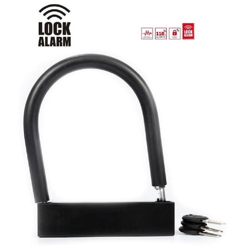 Sistema de alarme automático e sistema de bloqueio Módulo de alarme removível e/ou pode ser utilizado com alarme ou sem alarme Aço inoxidável endurecido processado a quente e manilha anti-torção À prova de spray de gelo, resistente a corrosão, resistente ao sal e às intempéries Anti Drill O pára-choque anti-choque evita arranhões Sensor duplo de choque e movimento Ativação com chave Baterias à prova de balas Pilhas de 12 botões (estilo relógio digital), duração da bateria: 6 meses
