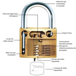 Com um corpo em latão maciço e um cilindro de alta durabilidade, o cadeado Papaiz é a solução ideal para garantir a proteção dos seus pertences, seja em casa, no trabalho, ou durante viagens. Sua estrutura garante uma resistência excepcional oferecendo tranquilidade e segurança, mantendo seus objetos pessoais sempre protegidos.