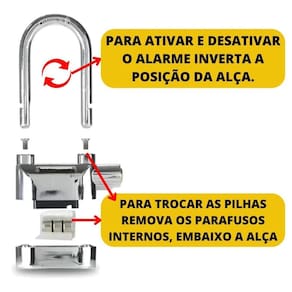 alarme de alta potência: dispara automaticamente quando o cadeado é ou movimentado, atuando como um poderoso dissuasor. Fácil de usar: sistema de travamento seguro e eficiente, com 3 chaves de segurança. Resistente e durável: projetado especificamente para atender às necessidades de segurança das motos, com design robusto e construção de alta qualidade. Revestimento resistente à corrosão: proporciona durabilidade mesmo em condições adversas. Versatilidade de uso: o cadeado pode ser utilizado como um cadeado comum, sem ativar o alarme. Especificações técnicas: