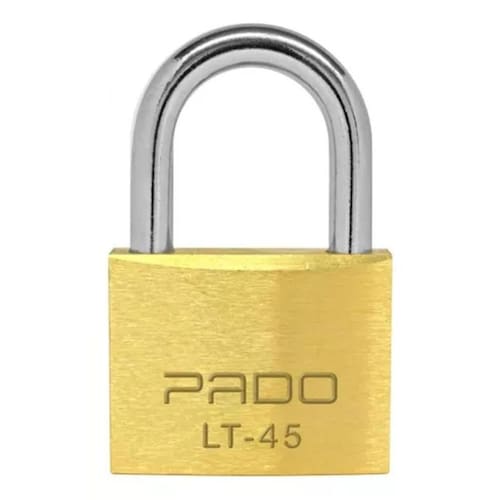 Cadeado pado lt 45mm Os cadeados tradicionais da pado são fabricados de acordo com todos os requisitos exigidos pela norma brasileira abnt nbr 15271: 2013. Segundo a norma, os cadeados são divididos entre níveis de segurança e resistência que vão do nível 01 até o nível 10, sendo o nível 10 o cadeado mais resistente. Proporcional ao nível de resistência estão os tamanhos dos cadeados. A pado oferece cadeados nos tamanhos 20 mm, 25 mm, 30 mm, 35 mm, 40 mm, 45 mm, 50 mm e 60 mm. Os tamanhos 30 mm, 35 mm e 45 mm também estão disponíveis com haste longa em dois tamanhos. As matérias primas utilizadas na fabricação dos cadeados são basicamente o latão, aço carbono e aço inoxidável. A principal matéria prima é o latão, uma liga composta basicamente de cobre e zinco, altamente resistente à corrosão. O latão é utilizado tanto na fabricação do corpo do cadeado, como nas chaves em alguns componentes internos. O cadeado em latão da pado lt-20 é feito em latão maciço com 20 mm. Conta com haste resistente fabricada em aço. Autoblocável com trava oblíqua. Características gerais: Material: molas em aço inox; haste em aço carbono endurecido; corpo, pinos, contra pinos e chaves em latão. : 90 dias. Marca: Não Informado