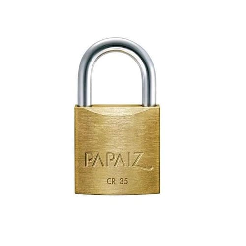 Compromisso com o cliente:Nosso principal diferencial competitivo é a satisfação dos clientes com um bom atendimento, um bom pós-vendas e SEMPRE buscamos o melhor preço possível=====================================================================Cadeado em Latão de 35mm com 2 Chaves Linha Clássica PapaizProduzidos com matérias-primas de primeiríssima qualidade, sistemas exclusivos de segurança e tecnologia sempre atualizadas, os cadeados da Linha Clássica são sinônimos de proteção e referência mundial de qualidade. 10 anos de garantia contra defeitos de fabricaçãoCom a Linha Standard, todo o mundo se sente mais seguro.São cadeados de padrão exportação que proporcionam muita qualidade para as mais diversas aplicações.Utilização:Portões e Janelas===================================================================== Características e especificações Produto: Cadeado Quantidade: 1 Cadeado Quantidade de Chaves: 2 Chaves Cor: Dourado Material: Latão maciço, haste de aço cementada e cromada Largura: 3,5cm Altura: 5,5cm Altura da Haste: 2,5cm Espessura da Haste: 1,2cm