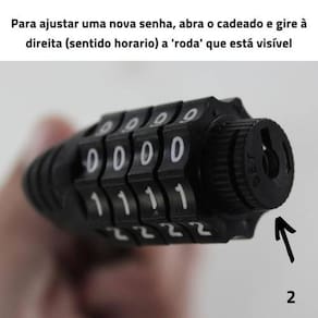 - Cadeado resistente e durável - Cabo de aço revestido em PVC - Segredo de combinação numérica - Tamanho de 1200mm - Proteção contra furtos e arrombamentos