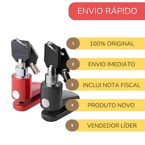 Proteja sua motocicleta com o Cadeado para Moto, um item indispensável para quem busca segurança e praticidade. Com um design moderno, este cadeado é compatível com todas as motocicletas que possuem disco ventilado, proporcionando tranquilidade e segurança contra roubo, chuva e vento.