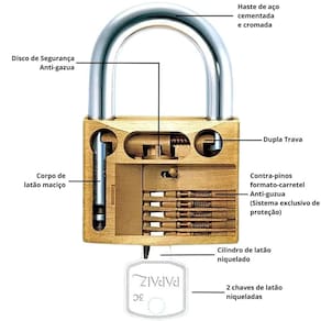 Com um corpo em latão maciço e um cilindro de alta durabilidade, o cadeado Papaiz é a solução ideal para garantir a proteção dos seus pertences, seja em casa, no trabalho, ou durante viagens. Sua estrutura garante uma resistência excepcional oferecendo tranquilidade e segurança, mantendo seus objetos pessoais sempre protegidos.