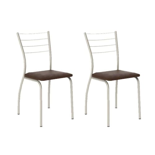 Cadeira De Cozinha 1700 Kit 2 Un Prata - Assento Courano Cacau - Carraro
