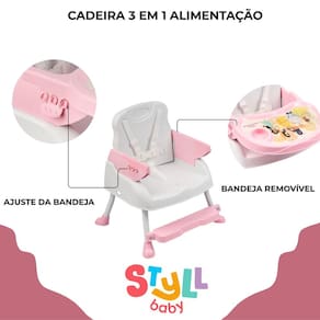 Cadeira de alimentação infantil portátil princesas 3 em 1 até 15 kg styll baby Cadeira para alimentação 3 em 1 é versátil, transformando-se em cadeira alta, cadeira baixa e assento tipo booster para ser em cima de uma cadeira regular. Leve e facilmente desmontável, pode ser transportada para qualquer lugar sem dificuldades. Muito segura, está equipada com cinto de segurança de 5 pontos. Registro inmetro: 013509/2024 Características: Idade recomendada: 6 meses + Suporta até: 15 kg Bandeja removível e ajustável em até 3 posições Apoio dos pés regulável Cinto de segurança de 5 pontos Suporte para copos Assento pode ser fixado com segurança em uma cadeira regular Material: plástico e aço de 3 meses direto com o fabricante Marca: Não Informado