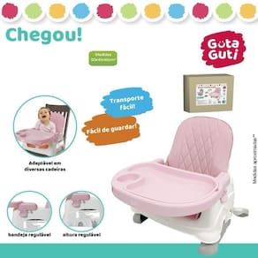 O booster de alimentação é prático. Possui regulagem de altura e da bandeja. Suporta no máximo 23kg, é adaptável em diferentes cadeiras e de fácil transporte e montagem.