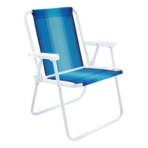 Dobrável e fácil de carregar, a Cadeira Alta Aço, além de tudo, é prática e confortável, perfeita para te acompanhar na praia, no camping, na pescaria ou no final de tarde com os amigos na varanda ou jardim de casa. Muito resistente, tem estrutura fabricada em aço carbono com acabamento em pintura epóxi à pó branca e peças plásticas em polipropileno, suportando até 110 Kg. Para guardá-la, basta dobrar e colocar em qualquer cantinho da sua casa. Sua tela é produzida em 100 % polietileno em diferentes modelos de tecido listrado. Basta escolher entre as suas cores preferidas e começar sua coleção! Ean: 7896020620020